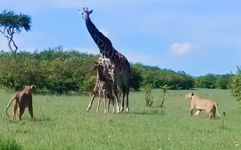 Giraffe Mother Defies Lion Pride to Protect Her Calf