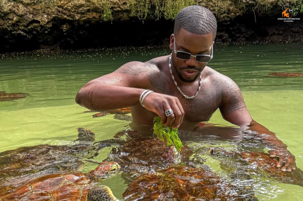 ZANZIBAR. Blending the spirit of Tarzan with the wanderlust of Mowgli, creative explorer NG.TheCreator recently took a walk on the wild side during his latest journey to Zanzibar. Known for his raw connection with nature and cinematic travel visuals, he shared a glimpse of his unforgettable moments—this time, feeding giant Aldabra tortoises on the serene shores of Prison Island.
