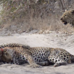 Serengeti. In the golden plains of the Serengeti, a dramatic standoff unfolded between a pride of lions and a resolute mother giraffe shielding her calf. While giraffes are often admired for their towering elegance, this moment revealed a different side—one of fearless maternal strength. As the lions closed in, the mother stood firm, using her powerful legs and towering presence to ward…