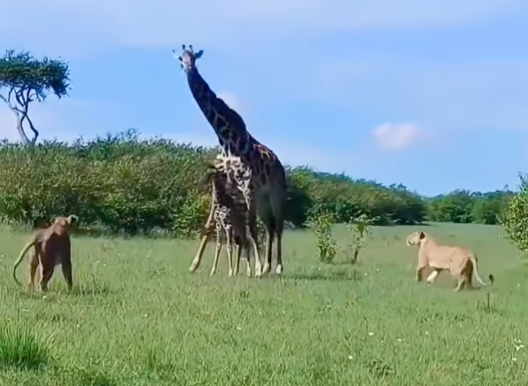 Giraffe Mother Defies Lion Pride to Protect Her Calf